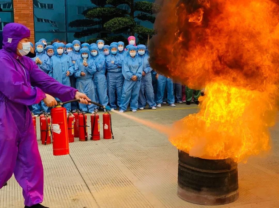 此次演练公司特邀了永兴专职消防队进行实地讲解和指挥演练。安全生产领导小组预先制订了严密、准确、可行的消防疏散演练方案,安排管理人员在楼梯楼层维持疏散秩序,严防踩踏,在规定时间内所有人员撤离车间,到指定的地方集合清点人数,确保演练成功,不发生次生伤害。